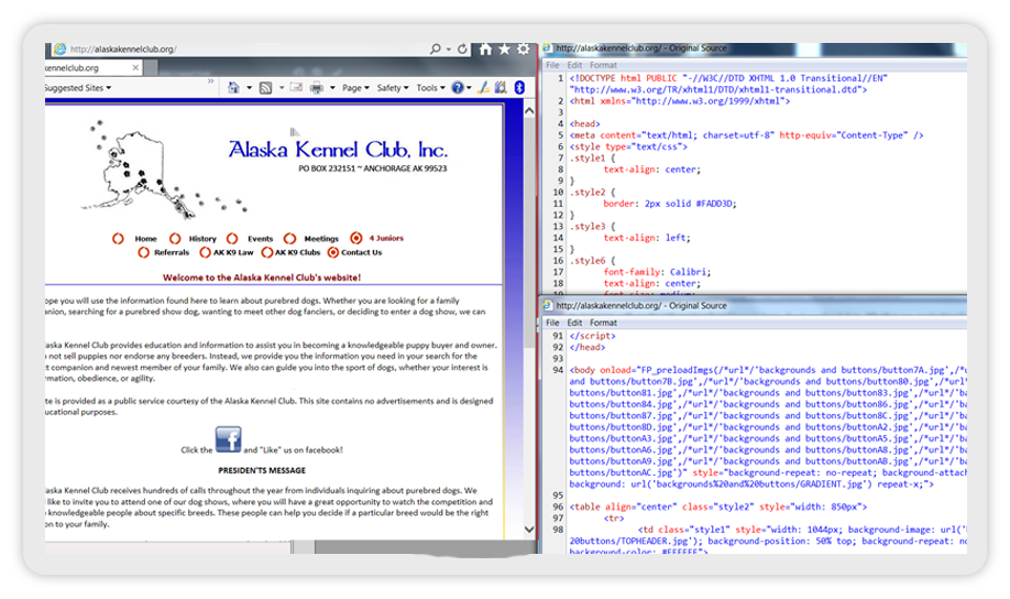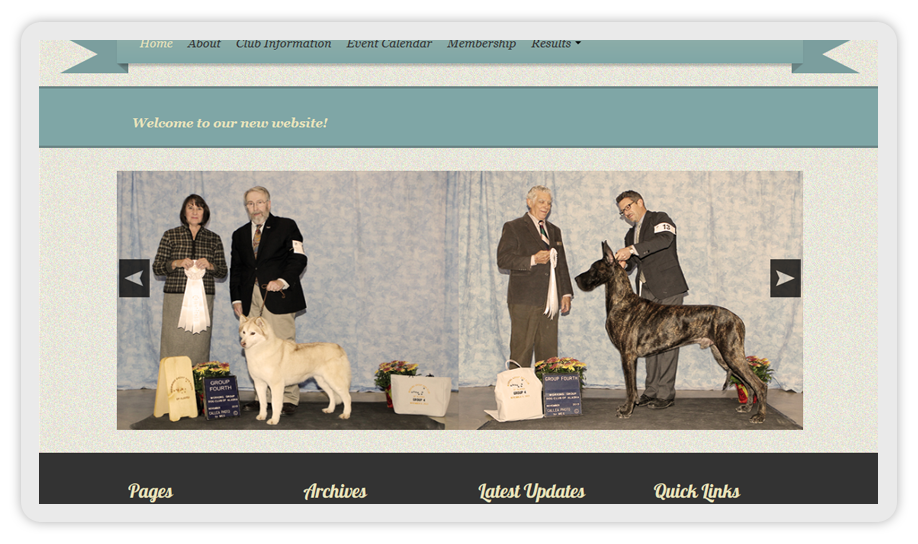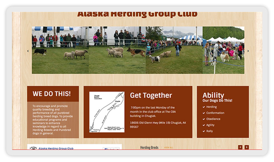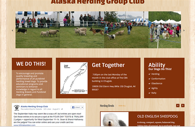 Word Press CMS, full breed group discription as tabbed information, device responsive, rotating banner, FaceBook interface.