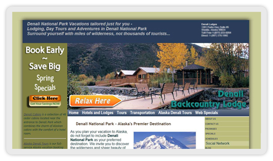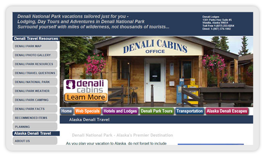 Denali Cabins the early years. Source updated to HTML and CSS